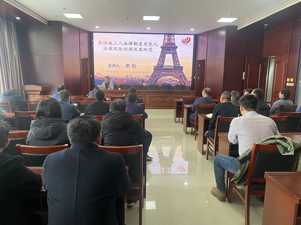 本次培訓(xùn)邀請(qǐng)了上海市建緯(鄭州)律師事務(wù)所栗魁主任進(jìn)行授課,主講的內(nèi)容是《實(shí)際施工人法律制度發(fā)包人法律風(fēng)險(xiǎn)識(shí)別及其防范》。本次培訓(xùn),栗魁主任從實(shí)際施工人制度的來(lái)源對(duì)發(fā)包人的多重風(fēng)險(xiǎn)及生成邏輯進(jìn)行了深入淺出的講解,又結(jié)合《最高人民法院關(guān)于審理建設(shè)工程施工合同糾紛案件適用法律問(wèn)題的解釋》對(duì)相關(guān)法律問(wèn)題進(jìn)行詳細(xì)解讀和分析,使與會(huì)人員對(duì)建設(shè)工程施工合同糾紛法律訴訟中的有關(guān)問(wèn)題有了深刻的理解。