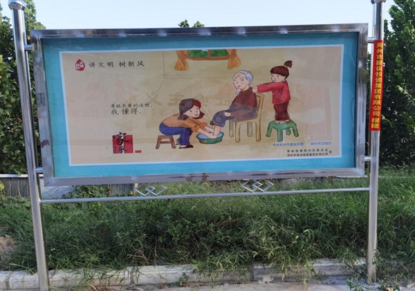 四、設(shè)置宣傳載體,營造文明家園濃郁氛圍。今年,集團(tuán)公司為郭崗村提供3萬余元幫扶資金幫助其打造了精神文明專欄,分為家風(fēng)家訓(xùn)(名人家風(fēng))專欄,“講文明 樹新風(fēng)”(孝當(dāng)先、傳承家風(fēng))、“文明健康 有你有我”公益廣告等內(nèi)容,使社會主義核心價(jià)值觀深刻融入到村民的生產(chǎn)生活和精神世界,形成全體村民的修身行善共識和明禮守法自覺,為促進(jìn)郭崗村經(jīng)濟(jì)健康發(fā)展、構(gòu)建美麗鄉(xiāng)村、文明家園打下良好根基。